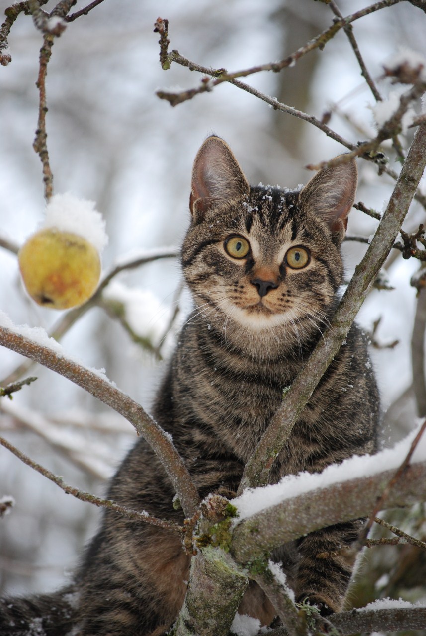 min katt har også et sånt favorittsted i et kirsebærtre.