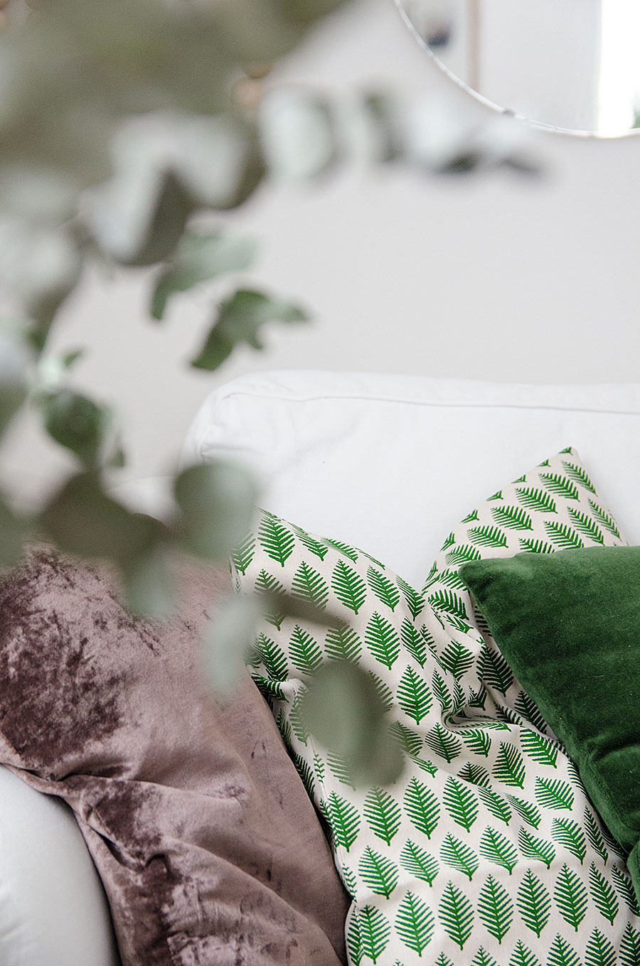 Jag tycker att det är så svårt med kuddar. De ska liksom matcha allt annat i rummet, så att det blir blir en harmonisk helhet. Hittade superfina kuddar på Hm home, som bara kostade 49:90 kr st, och de funkade hur bra som helst i min soffa. (kuddarna med löv)Det gillar jag..
